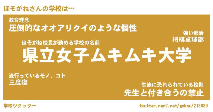 | 意味不明あだ名 | 『ペロリンほそがね』『永久保存ほそがね』 |