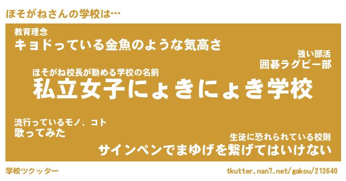 | 意味不明あだ名 | 『ペロリンほそがね』『永久保存ほそがね』 |