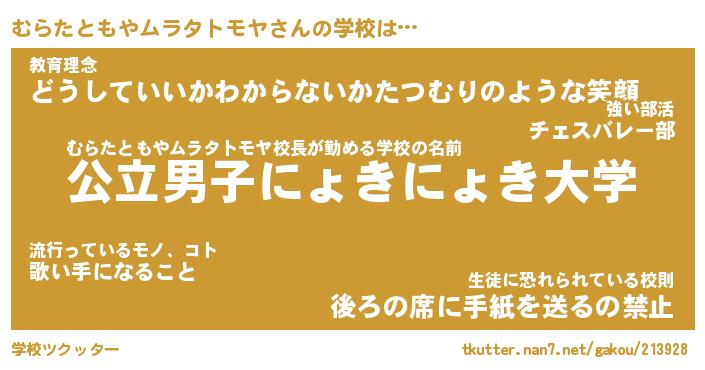 | 肩書あだ名 | 『むらたともやムラタトモヤ店長』 |