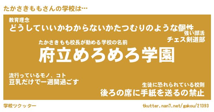 | 男性向けラノベタイトル風あだ名 | 『たかさきももの憂鬱』 |