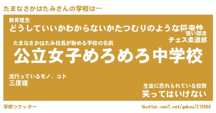 | 伝説のあだ名 | 『封印されしスナイパーたまなさかはたみ』 |