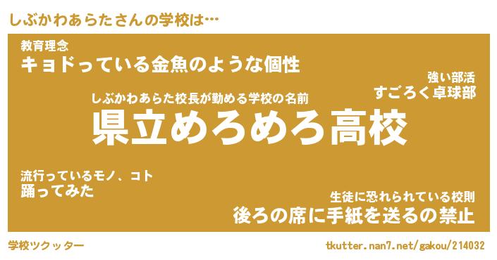 | 伝説のあだ名 | 『伝説のスナイパーしぶかわあらた』 |