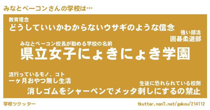 | 男性向けラノベタイトル風あだ名 | 『ミナトベーコンアートオンライン』 |