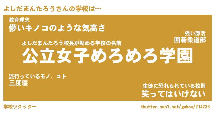 | 伝説のあだ名 | 『封印されしスナイパーよしだまんたろう』 |