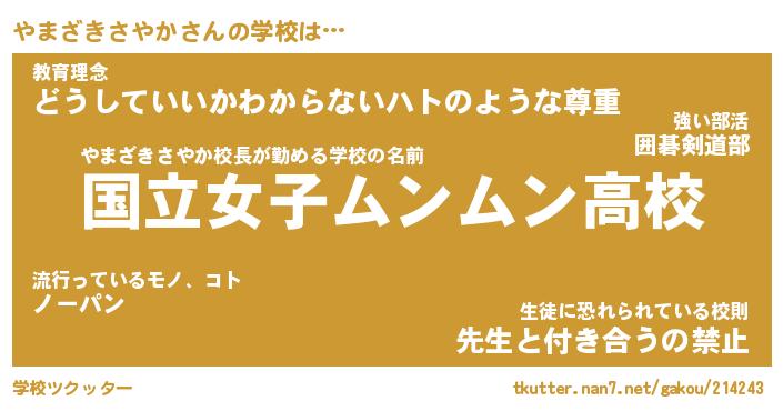 | 肩書あだ名 | 『やまざきさやか店長』 |