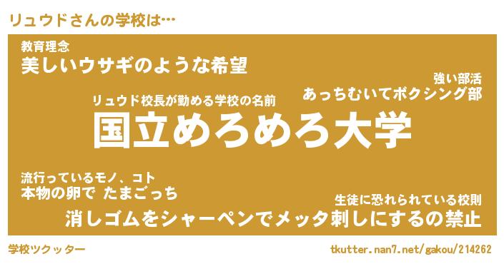 | 男性向けラノベタイトル風あだ名 | 『リュウドの憂鬱』 |