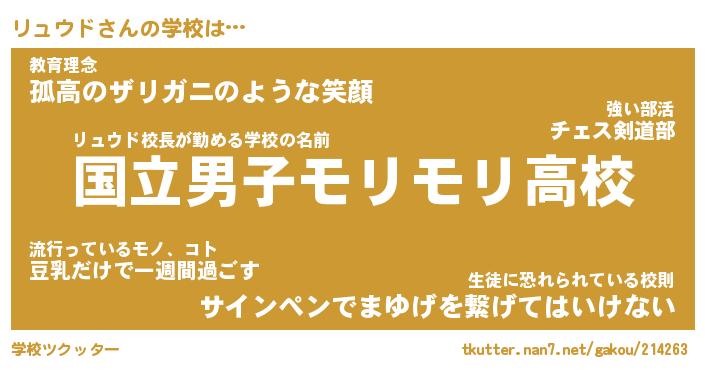 | 男性向けラノベタイトル風あだ名 | 『リュウドの憂鬱』 |
