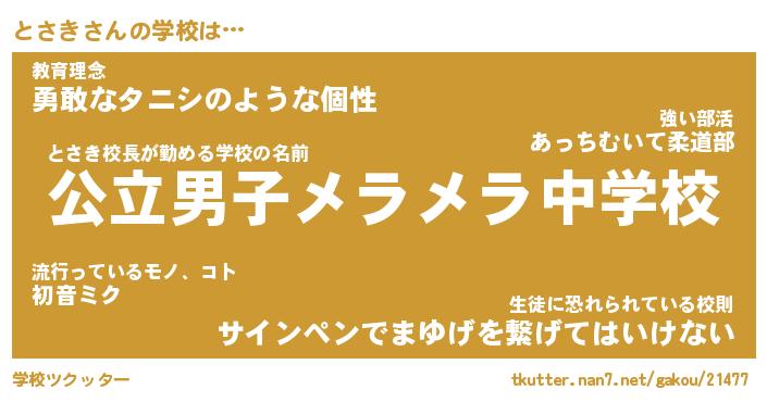 | 男性向けラノベタイトル風あだ名 | 『とさきの憂鬱』 |