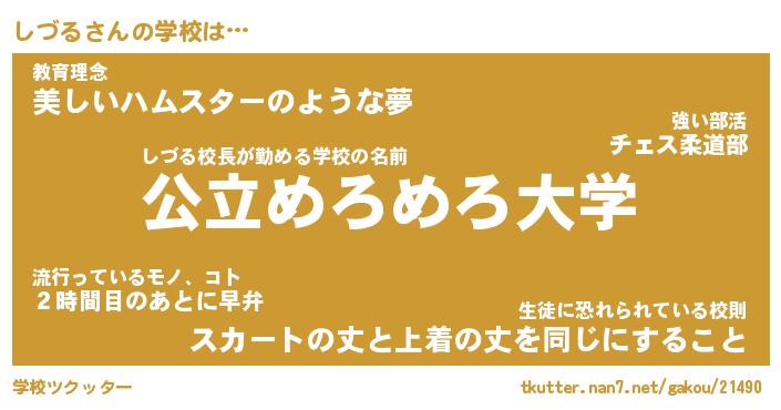 | ヘコむあだ名 | 『しづっふぃ~』『なまこ酢』 |