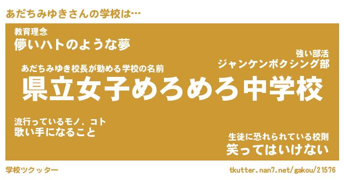 | ヒーロー風カッコイイあだ名 | 『スーパーアダチミユキ』『暗黒騎士アダ』 |