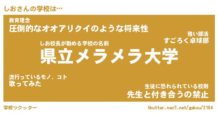 | ヘコむあだ名 | 『しおにー』『牛乳』『しおお』 |