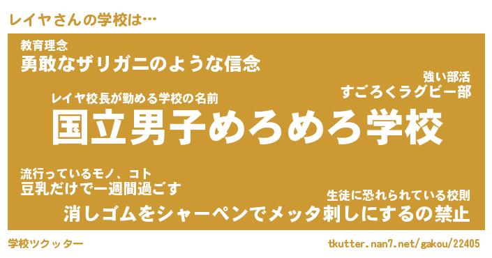 | ヘコむあだ名 | 『レイっふぃ~』『なまこ酢』 |