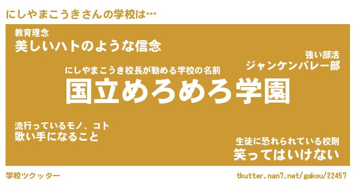 | 男性向けラノベタイトル風あだ名 | 『にしやまこうきの憂鬱』 |
