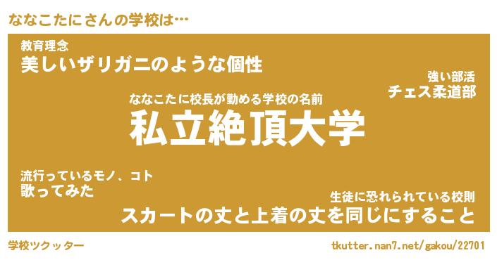 | 男性向けラノベタイトル風あだ名 | 『ななこたにの憂鬱』 |