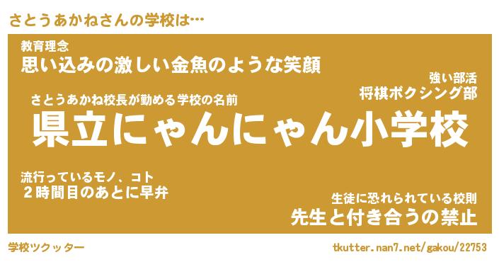 | 男性向けラノベタイトル風あだ名 | 『さとうあかねの憂鬱』 |