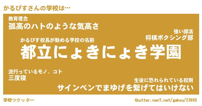 | 男性向けラノベタイトル風あだ名 | 『かるぴすの憂鬱』 |
