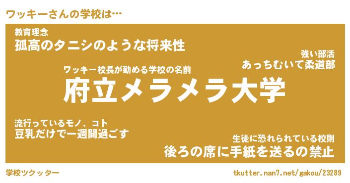 | 男性向けラノベタイトル風あだ名 | 『ワッキーの憂鬱』 |
