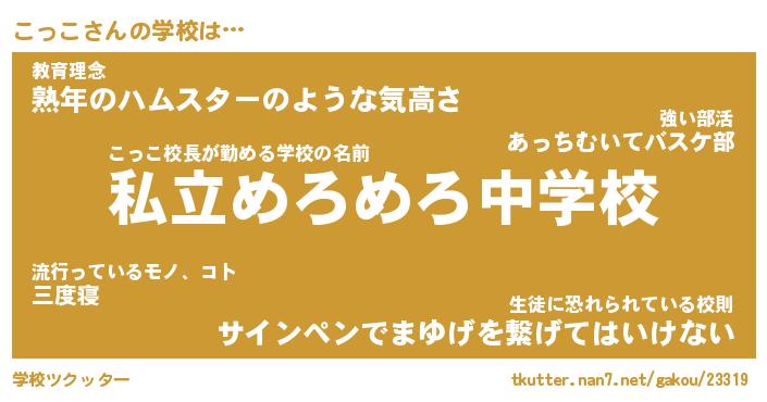 | 男性向けラノベタイトル風あだ名 | 『こっこの憂鬱』 |