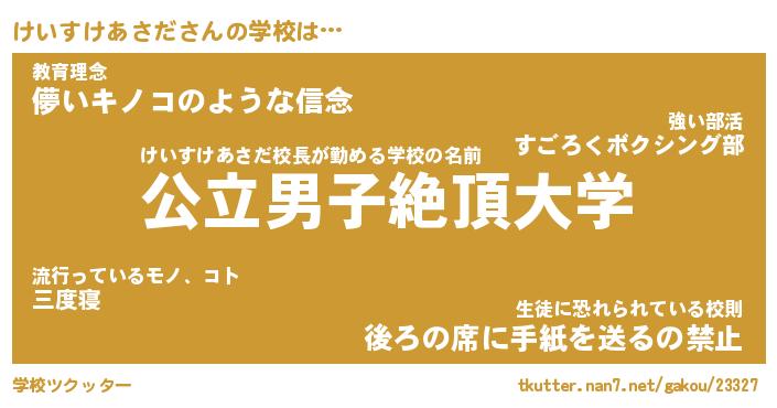 | 男性向けラノベタイトル風あだ名 | 『けいすけあさだの憂鬱』 |