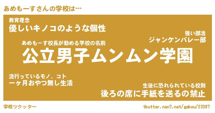 | 男性向けラノベタイトル風あだ名 | 『あめもーすの憂鬱』 |