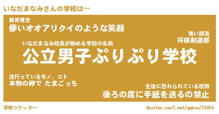 | 男性向けラノベタイトル風あだ名 | 『いなだまなみの憂鬱』 |