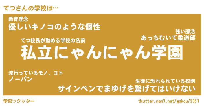 | ヘコむあだ名 | 『てつもー』『つくし』『てつっ子』 |