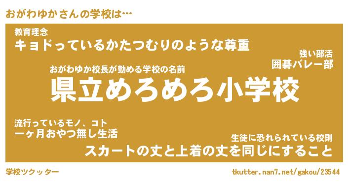 | 男性向けラノベタイトル風あだ名 | 『おがわゆかの憂鬱』 |