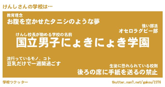 | 男性向けラノベタイトル風あだ名 | 『けんしの憂鬱』 |
