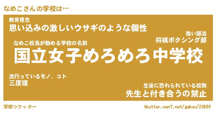| 意味不明あだ名 | 『ペロリンなめこ』『なめこフォーエバー』 |