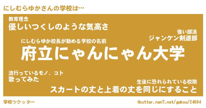 | ヒーロー風カッコイイあだ名 | 『スーパーニシムラユカ』『魔戒騎士ニシ』 |