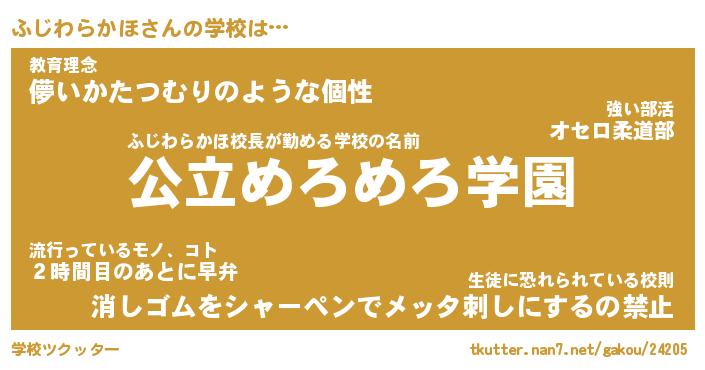 | 伝説のあだ名 | 『伝説のスナイパーふじわらかほ』 |
