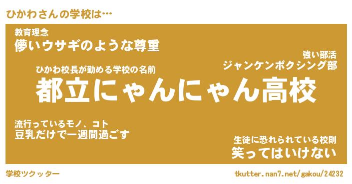| 男性向けラノベタイトル風あだ名 | 『ひかわの憂鬱』 |