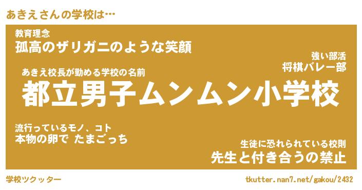 | ヒーロー風カッコイイあだ名 | 『スーパーアキエ』『ウルトラあきえマン』 |