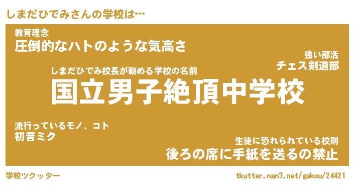 | 女子向けラノベタイトル風あだ名 | 『しまだひでみ姫と円卓の騎士』 |