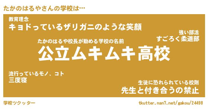 | 男性向けラノベタイトル風あだ名 | 『たかのはるやの憂鬱』 |
