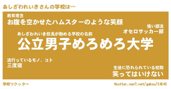 | 男性向けラノベタイトル風あだ名 | 『あしざわれいきの憂鬱』 |