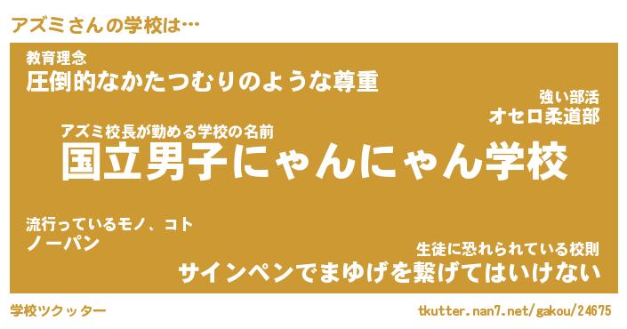| 男性向けラノベタイトル風あだ名 | 『アズミの憂鬱』 |