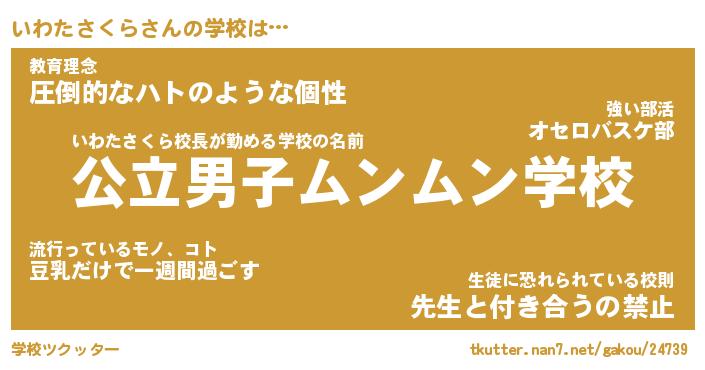 | 男性向けラノベタイトル風あだ名 | 『いわたさくらの憂鬱』 |