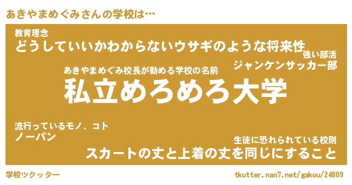 | 伝説のあだ名 | 『伝説のスナイパーあきやまめぐみ』 |
