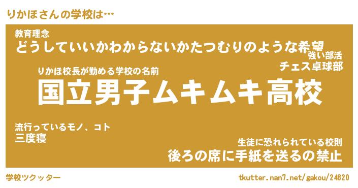 | 男性向けラノベタイトル風あだ名 | 『りかほの憂鬱』 |