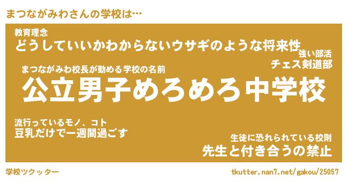 | 男性向けラノベタイトル風あだ名 | 『まつながみわの憂鬱』 |