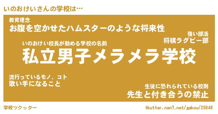 | 男性向けラノベタイトル風あだ名 | 『いのおけいの憂鬱』 |