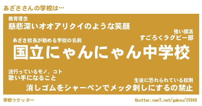 | ヘコむあだ名 | 『あざもー』『なまこ酢』『あざ太郎』 |
