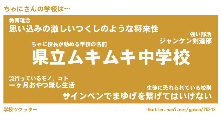 | 男性向けラノベタイトル風あだ名 | 『ちゃにの憂鬱』 |