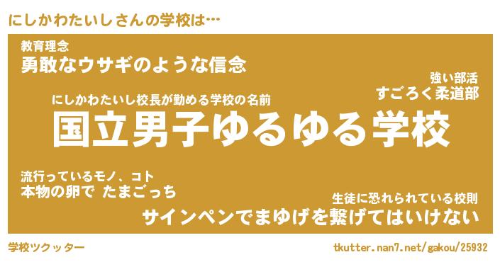 | 男性向けラノベタイトル風あだ名 | 『にしかわたいしの憂鬱』 |