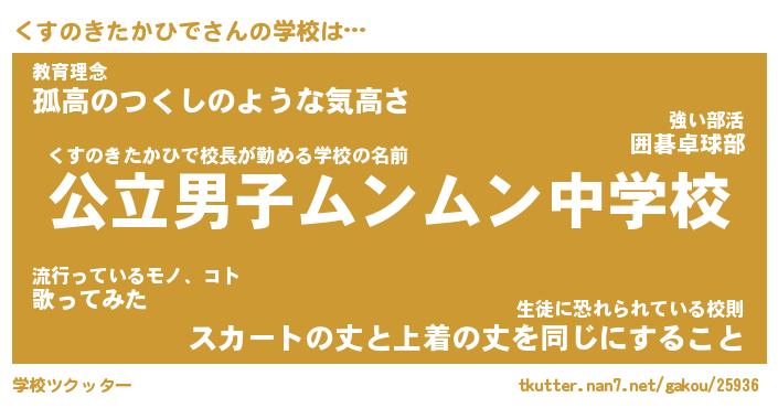 | 女子向けラノベタイトル風あだ名 | 『くすのきたかひで姫と円卓の騎士』 |