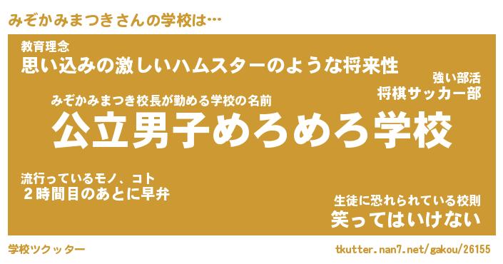| 伝説のあだ名 | 『不死鳥のスナイパーみぞかみまつき』 |
