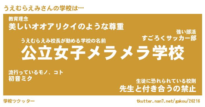 | 肩書あだ名 | 『うえむらえみ社長』『うえむらえみ先生』 |