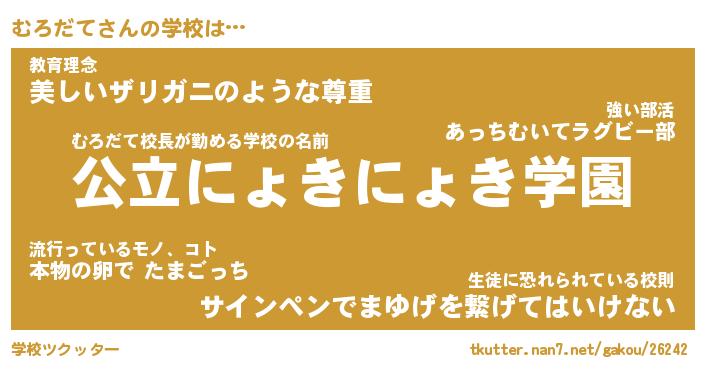 | 男性向けラノベタイトル風あだ名 | 『むろだての憂鬱』 |