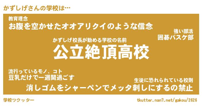 | 男性向けラノベタイトル風あだ名 | 『かずしげの憂鬱』 |
